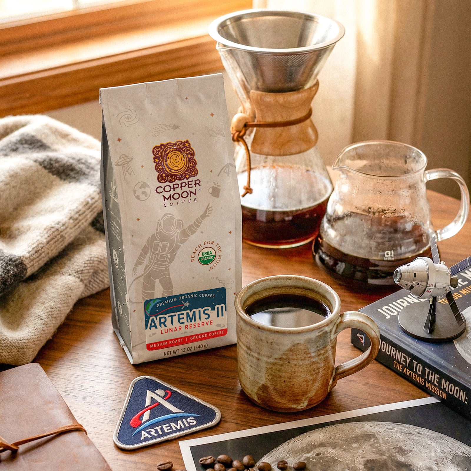 Copper Moon Coffee Artemis II Lunar Reserve is an organic coffee inspired by the Artemis II Mission. Crafted for clarity and forward momentum, this organic coffee is roasted to deliver a smooth, balanced cup with a clean finish. This limited release honors the drive to push beyond boundaries and venture into new territory.
